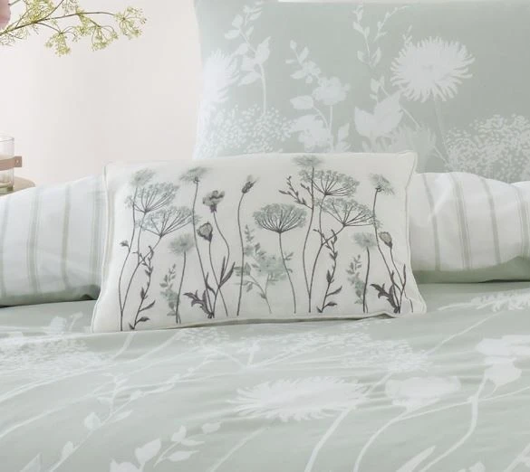 A country floral cushion with a hand painted border of meadow flowers – Co-ordinates with the Meadowsweet bedlinen.